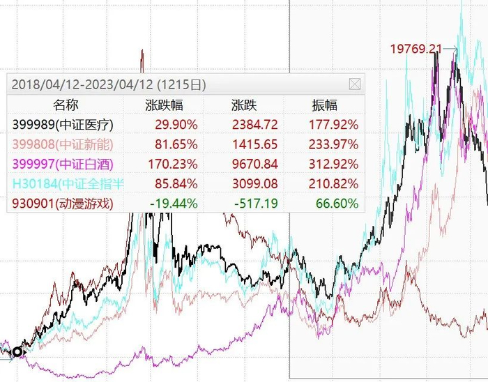 我为什么不买白酒,近5年白酒|新能源|医疗|芯片|游戏走势比较