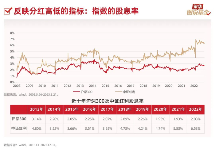 9、指数的股息率是成份股一年的分红额总和与成份股市值总和的比值,用来衡量指数成份股的分红能力。以中证红利指数为例,近5年来成份股股息率稳步提升,超越沪深300。