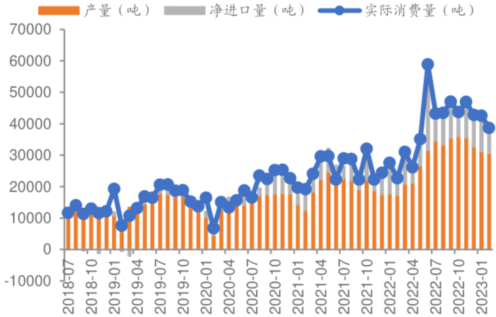 当前不少外采锂精矿和锂云母的企业由于库存耗尽,生产亏损开始停产。SMM预计2023年4月国内碳酸锂产量为2.8万吨,环比下降5.7%,较去年最高产量3.7万吨下降22.7%。