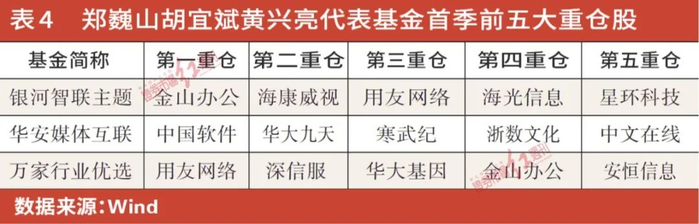 就以智联主题为例分析,最新的十大重仓股除去用友网络和海康威视外,年内最新的涨幅全部超过了30%,特别是海光信息、中科曙光、卓易信息、大华股份均已实现了涨幅翻番,而这四只标的均是第一季度新近重仓的公司。同时,郑巍山所保留的上一季重仓股仅有金山办公和国网通信。对比来看被调出的标的,中国长城、中望软件、中国软件等明显涨幅稍逊一筹。