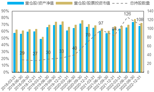 图7:基金持股数量与重仓股权重