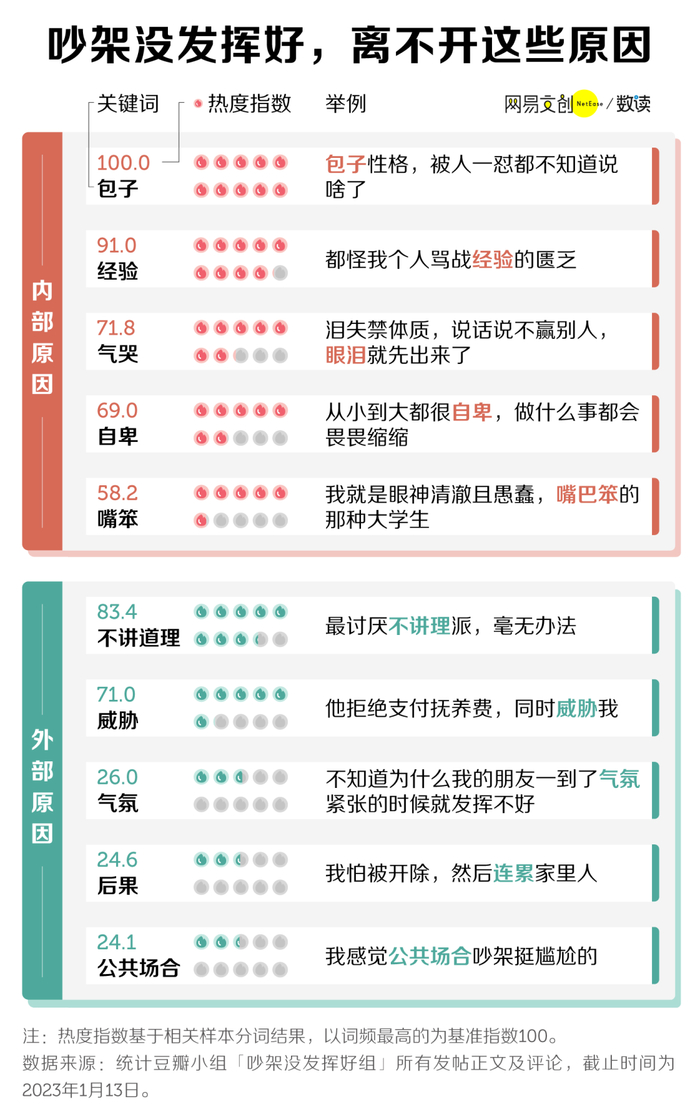 自己性格“包子”、缺乏经验、对方蛮不讲理,是排名前三的吵架失败原因。