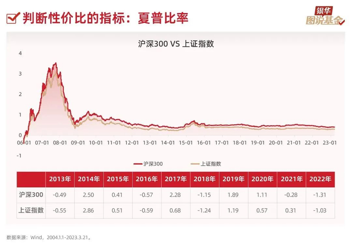 5、在进行投资的时候,“性价比”也是重要因素之一。一般,衡量指数的“性价比”,可以参考夏普比率指标。夏普比率代表的是每承受一单位总风险,能(相对于无风险利率)产生多少的超额收益。以近10年沪深300和上证指数表现为例,虽然波动较大,但沪深300指数凭借更高的累计收益,收获相对更高的夏普比率。