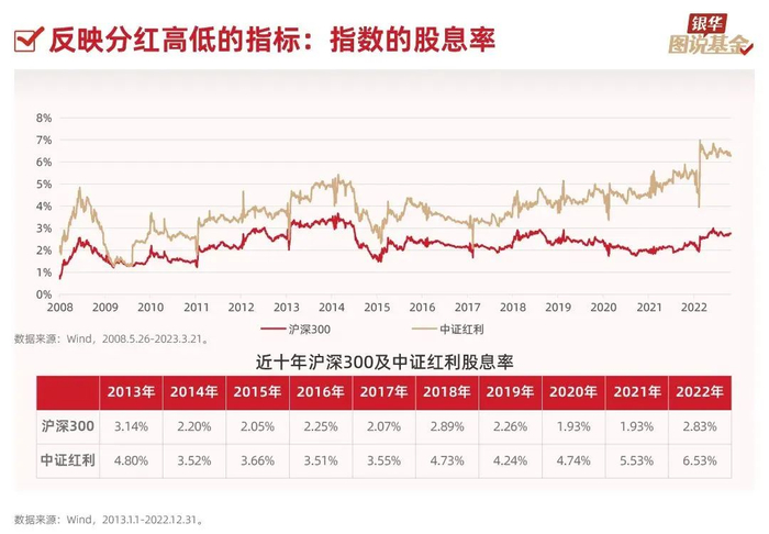 9、指数的股息率是成份股一年的分红额总和与成份股市值总和的比值,用来衡量指数成份股的分红能力。以中证红利指数为例,近5年来成份股股息率稳步提升,超越沪深300。