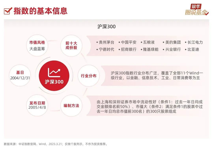 2、了解一只指数可以从多个维度出发,最基础的就是指数的基本信息。主要包括指数的名称、代码、编制方法、市值风格、行业分布等,是投资者在选择指数时必须参考的内容。