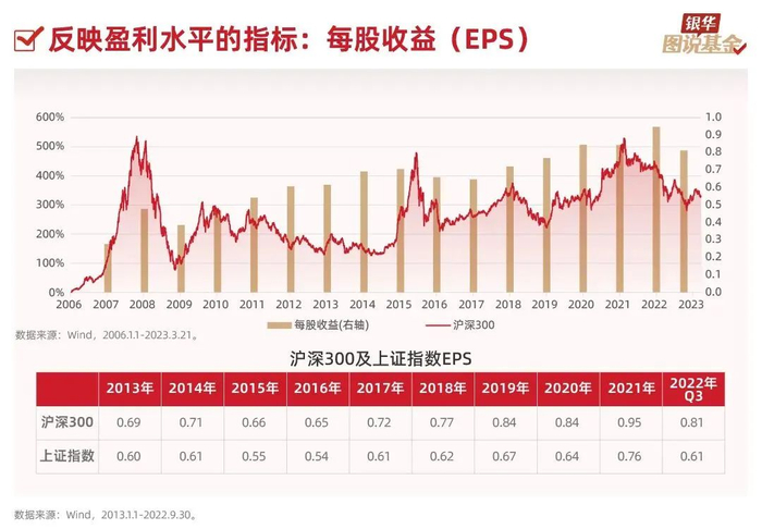 7、每股收益(EPS)是反映盈利水平的重要指标,具体指成份股的归母净利润总额除以最新总股本。EPS常被用来反映企业的经营成果,一般而言,每股收益越高,表明股东的投资效益越好,大部分情況下,EPS和股价是绝对呈现正相关的。因此,EPS是股东最关心的指标之一。