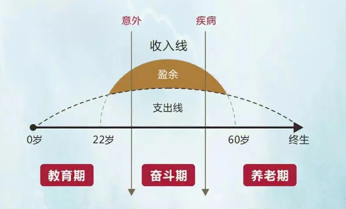 人生收支曲线给我们的启示是,我们需要把有限时间内挣的钱,通过科学的财务规划,合理、有效地分配至整个人生。此外,通过工作获取主动收入之余,也有必要通过投资理财获取被动收入,为“不赚钱只消费”的老年生活,提供更多的资金保障。