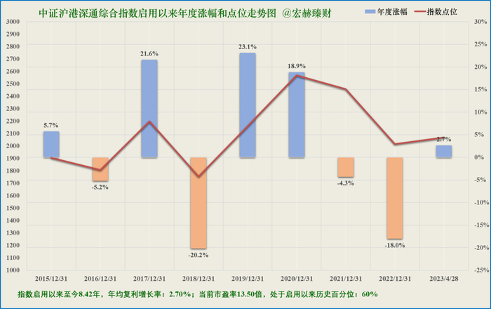 3、中证沪港深通综合指数年度涨幅和点位走势图