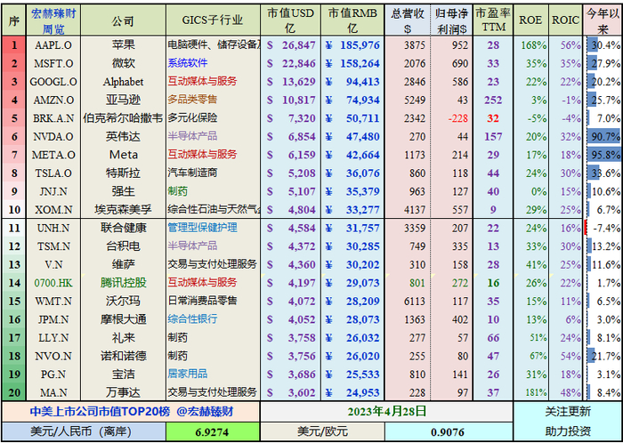 2022年末三甲:苹果2.07万亿、微软1.79万亿、Alphabet 1.14万亿美元;