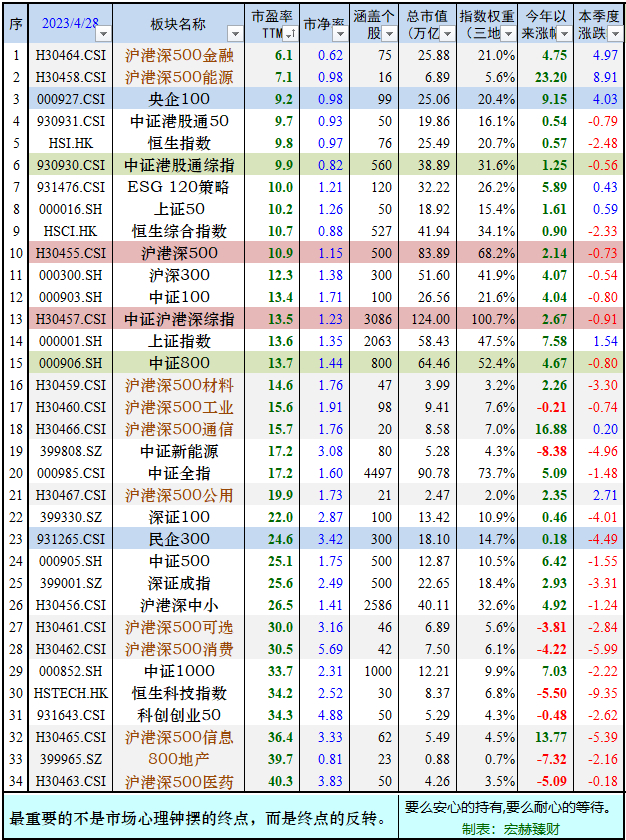 绿色底纹分别为A股和港股的有效代表指数中证800指数和中证港股通综合指数。