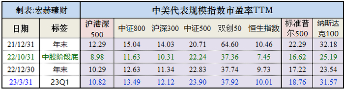 A股自2020年以来最小值12.04(20/3/23);最大值为18.99(21/2/19)