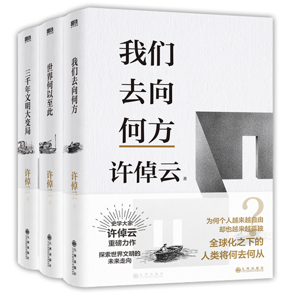 许倬云文明三书,是当代史学大家许倬云重磅力作。他在此三本书中,首次系统性讲解文明史,70年博学深思熔铸一炉,以独树一帜的“大历史观”勾勒世界文明发展线路图——回溯过去的文明(《三千年文明大变局》),评述现在的文明(《世界何以至此》),探寻人类文明未来的走向(《我们去向何方》)。他以反思、审视的态度,直面当今人类社会所面临的困境,力图以中国文化为基点,开拓人类文明共同体的革新之路。