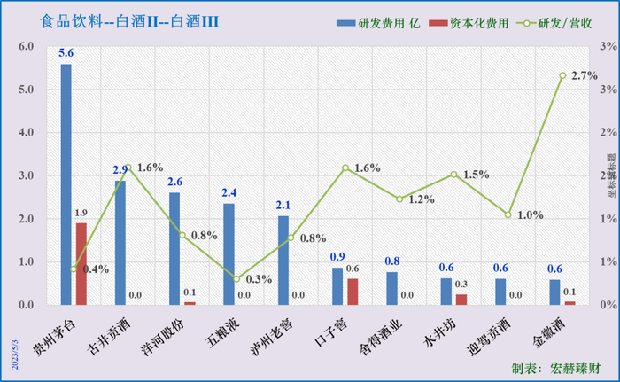 研发投入三甲:贵州茅台5.6亿、古井贡酒2.9亿、洋河股份2.6亿。