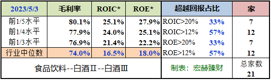 前1/3水平投入资本回报率 ROIC【21.4%】