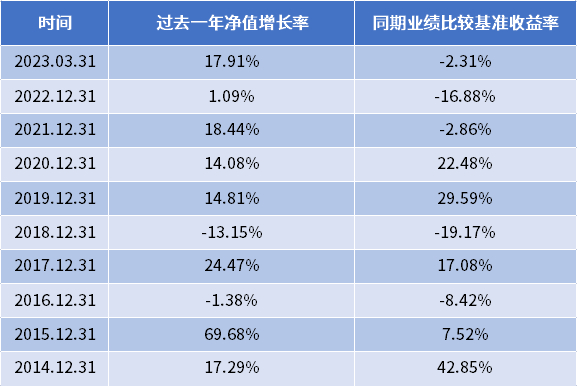 鲍无可最近也有点火。坚持风格迎来收获,基金净值迭创新高,在管所有产品近一年收益均排名前4%,代表作能源基建基金管理以来净值增长率314.29%。(业绩数据来源:景顺长城,经托管行复核,截至2023.03.31,同期业绩基准86.90%,业绩基准为沪深300指数*80%+中证全债指数*20%,排名数据见尾注)