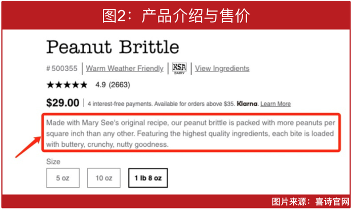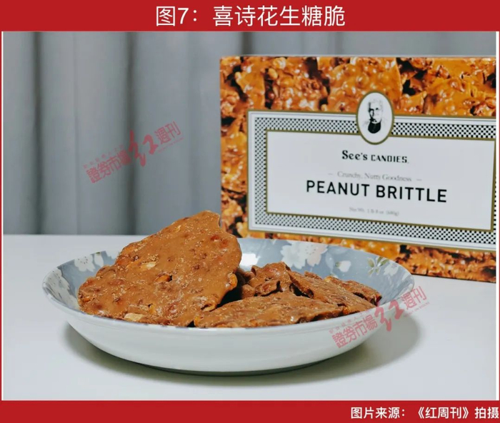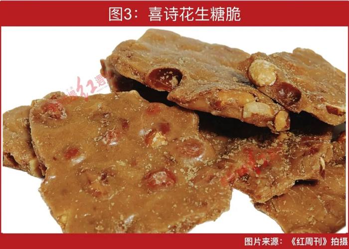 但喜诗对自己产品的质量推崇至极,在产品介绍页面写道:“我们的这款花生糖脆采用的是创始人玛丽的原始配方,每英尺产品含有花生的数量更多,每一口咬下去满满的都是黄油香、酥脆感、坚果香。”