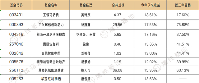 工银可转债比较特殊,股票仓位大概只有一半,持有的多是电力股,而且长期持仓银行、能源等企业的可转债,也可以看做偏股型基金了,整体的持仓的中特估属性非常强,今年甚至都跑赢了不少股票基金;