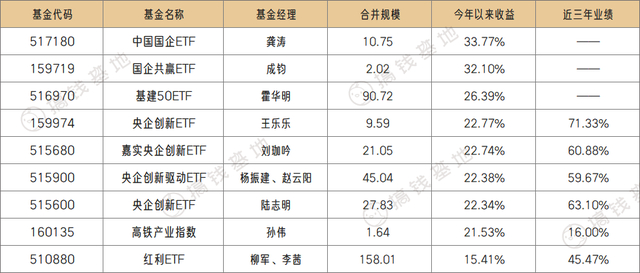 这里我只筛了一部分今年业绩靠前的,最好的是中国国企ETF,今年业绩30%+,这业绩比起AI基也不赖了。