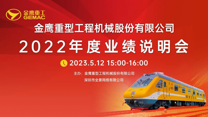 金鹰重型工程机械股份有限公司将于2023年5月12日(星期五)下午15:00-16:00举行2022年度业绩网上说明会,欢迎广大投资者积极参与!