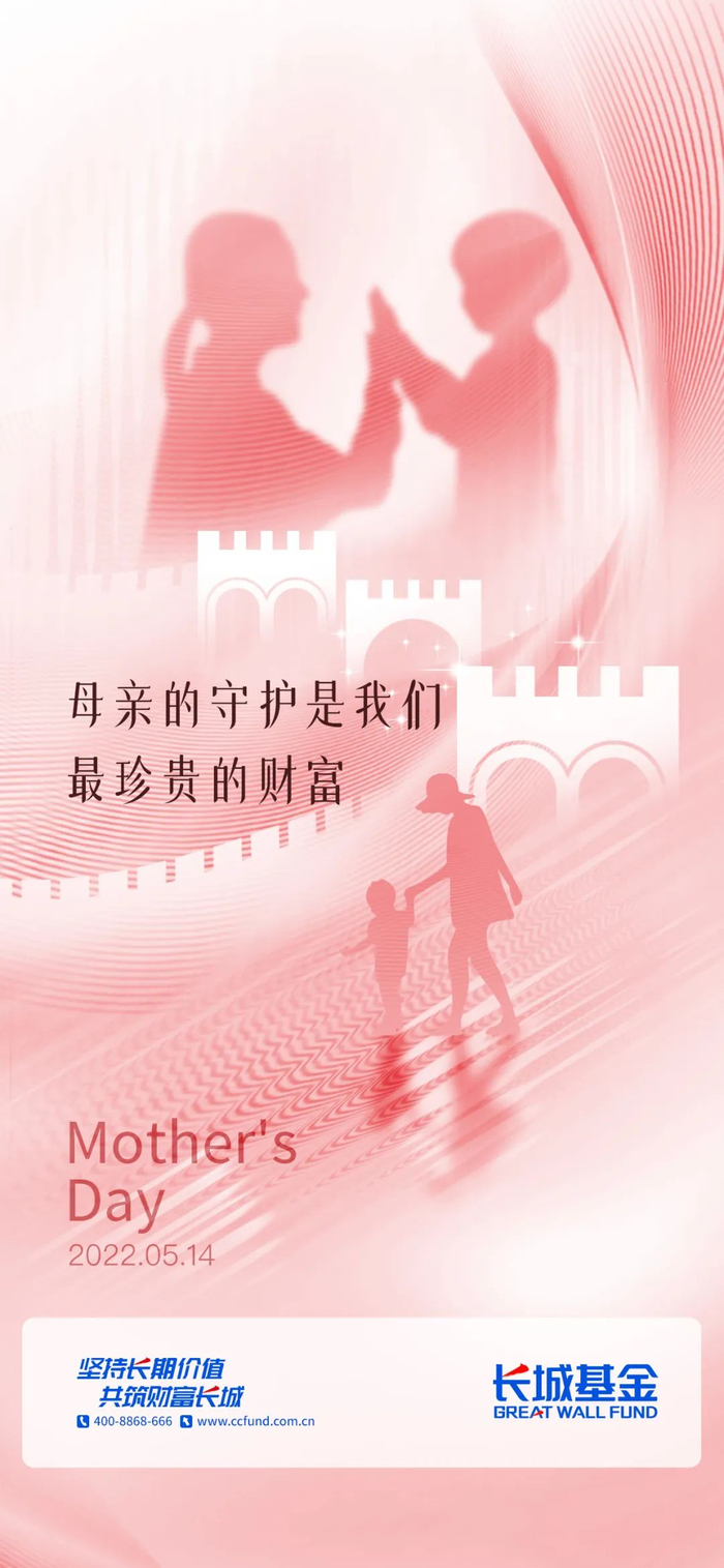 【活动规则】:文末留言并点亮“赞”和“在看”,送上您的母亲节祝福,或分享您的基金投资心得、您与长城基金的故事,将有机会获得长城基金送出的陪伴暖心好礼。我们将从精选留言中随机抽取10位幸运小伙伴,每人送出20元现金红包。截至5月15日12点,若“赞”和“在看”数均突破400,红包加码为25元。