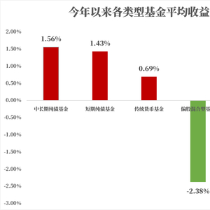 经历了2022年4季度债市流动性危机,今年以来债基迎来净值修复,中长期纯债基金平均收益1.56%,短期纯债基金1.43%,同期偏股基金下跌2.38%。