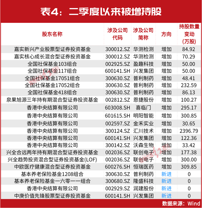 此外,“四冠王”赵诣也在二季度现身,其旗下的泉果旭源三年持有增持了恩捷股份(见表4)。