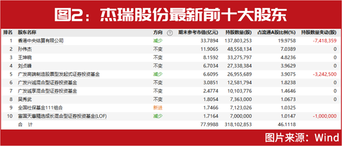 5月19日,杰瑞股份推出了回购报告书,同时推出的还有回购事项前十名股东情况。数据显示,自二季度以来,朱少醒旗下的富国天惠精选成长减持公司100.00万股,持股数量降至700.00万股,至此,富国天惠精选成长也由今年一季度末的第八大股东降为第十大股东(见图2)。