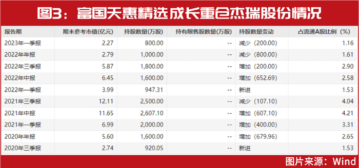 据梳理,富国天惠精选成长是在2020年三季度末新进入杰瑞股份前十大股东名单的,当时持股920.05万股,持股市值为2.74亿元,而后便是长达四个季度的坚守。在此期间,富国天惠精选成长有增有减,整体以增为主。在此期间,杰瑞股份也为富国天惠精选成长带来了不俗浮盈,至2021年三季度末,富国天惠精选成长的持股市值已高达12.11亿元。随后,富国天惠精选成长选择对杰瑞股份获利了结。