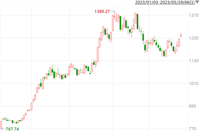 数据来源:融通产业趋势臻选基金2023年一季报。重仓持股统计日为当季度最后一个交易日。不代表基金当前持股,也不代表本公司管理的基金的投资标的,亦不构成任何投资建议与承诺。个股历史走势并不代表未来业绩。