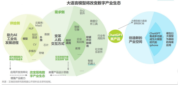 艾瑞咨询盘点了大语言模型应用落地对数字产业的影响: