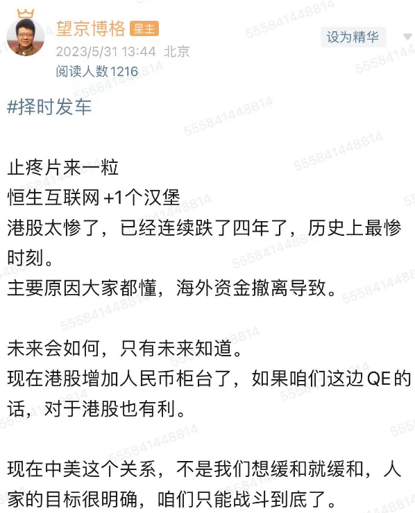 美联储预计要停止加息了,这个对于港股是一个非常好的利好。MSCI的老大最近发言说,中国上市公司只要足够有吸引力,外资还是会回来的。博格觉得现在就全球而言,最有吸引力的就是港股了吧。