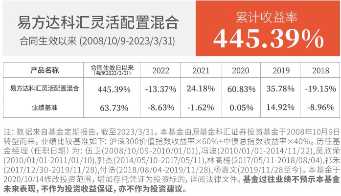 杨嘉文管理的易方达科汇混合自合同生效以来累计收益达445.39%,杨嘉文自2019年末起管理该基金: