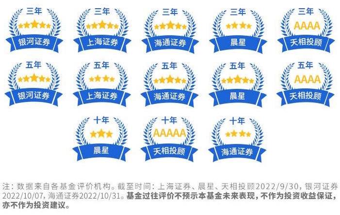 而易方达科汇混合过往表现也受到基金评价机构关注,获得3家评价机构三年期五星评价、3家评价机构五年期五星评价、天相投顾十年期AAAAA评价。