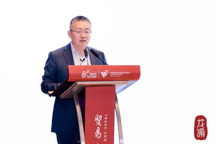 ▲张裕股份总经理孙健先生应邀在国际葡萄与葡萄酒产业大会平行论坛“贸易投资论坛”上作分享