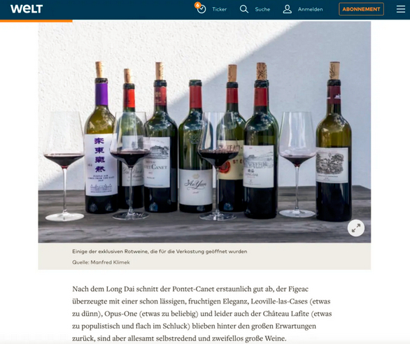 ▲德国《世界报》发表的《中国葡萄酒会很快超越法国葡萄酒吗?》文章