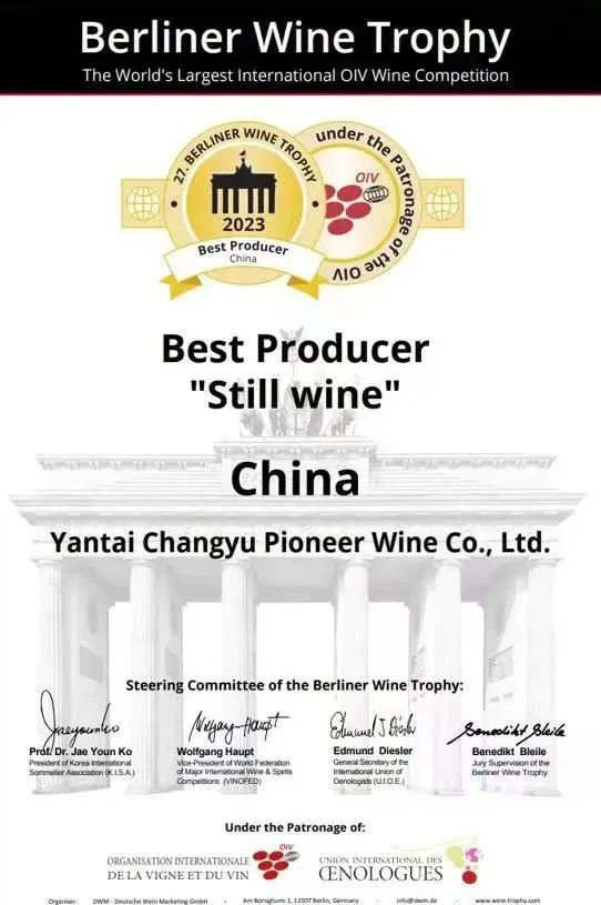 ▲2023年5月,张裕荣获柏林葡萄酒大赛“最佳葡萄酒生产商”特别大奖,为中国产区唯一获得该项荣誉的企业,这也是张裕连续四年斩获该项殊荣。