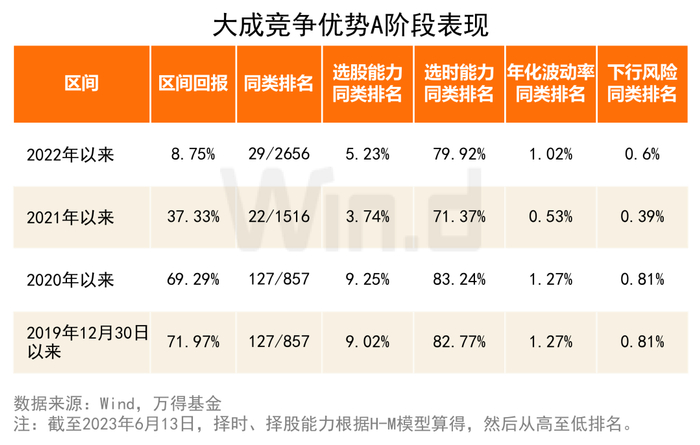 大成竞争优势A(090013.OF)及基准自成立2014年04月22日至2023年6月13日的年度收益分别为29.2%/45.14%、46.31%/6.76%、1.06%/-8.55%、38.06%/15.04%、-31.19%/-18.37%、7.99%/26.87%、23.27%/20.36%、26.28%/-3.07%、-1.14%/-16.57%、10.0%/0.12%。