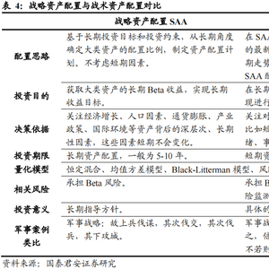 不过值得注意的是,战术资产配置是在战略资产配置的基础上,根据经济短期变化情况,通过分析预测资本市场的中短期(一般为数月至1年)走势,去主动把握短期投资机会的一种做法,它是可以适当偏离战略资产配置基准调整组合内资产比例的。