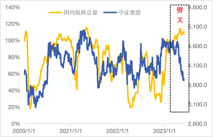图4:国内航班量和旅游指数走势呈现正相关性