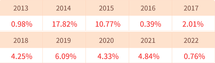 不仅长期向上,在2013-2022年这10个完整自然年度里,债券基金指数年度收益均为正。