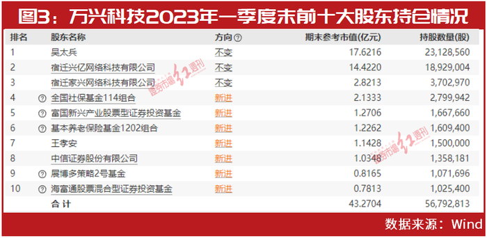 对炒概念颇为热衷,近期强烈看好科技领域的超级牛散王孝安,今年一季度期间则对万兴科技完成了建仓。季度末以150万股的持仓位居公司第七大股东(见图3)。