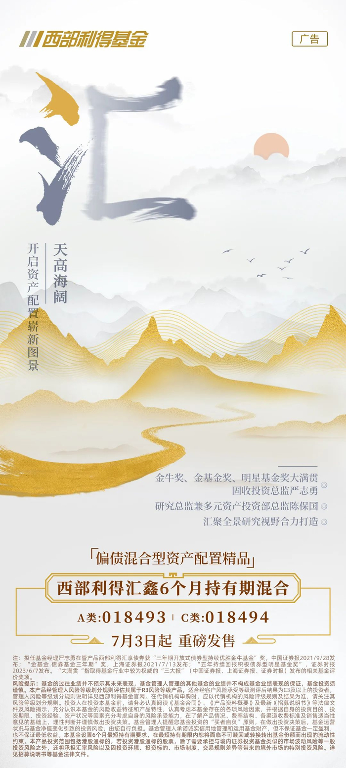基金的过往业绩并不预示其未来表现,基金管理人管理的其他基金的业绩并不构成基金业绩表现的保证,基金投资须谨慎。本产品经管理人风险等级划分规则评估其属于R3风险等级产品,适合经客户风险承受等级测评后结果为C3及以上的投资者,管理人风险等级划分规则说明详见西部利得基金官网。在代销机构申购时,应以代销机构的风险评级规则及结果为准,请关注其风险等级划分规则。投资人在投资本基金前,请务必认真阅读《基金合同》、《产品资料概要》及最新《招募说明书》等法律文件及风险揭示,充分认识本基金的风险收益特征和产品特性,认真考虑本基金存在的各项风险因素,并根据自身的投资目的、投资期限、投资经验、资产状况等因素充分考虑自身的风险承受能力,在了解产品情况、费率结构、各渠道收费标准及销售适当性意见的基础上,理性判断并谨慎做出投资决策。基金管理人提醒您基金投资的“买者自负”原则,在做出投资决策后,基金运营状况与基金净值变化引致的投资风险,由您自行负担。基金管理人承诺诚实信用地管理和运用基金财产,但不保证基金一定盈利,也不保证最低收益。本基金设置6个月最短持有期要求,在最短持有期限内您将面临不可赎回或转换转出基金份额而出现的流动性约束。本产品投资范围包括港股通标的,若投资港股通标的股票,除了需要承担与境内证券投资基金类似的市场波动风险等一般投资风险之外,还将承担汇率风险以及因投资环境、投资标的、市场制度、交易规则差异等带来的境外市场的特别投资风险。详见招募说明书等基金法律文件。本产品由西部利得基金发行与管理,代销机构不承担产品的投资、兑付和风险管理责任。基金有风险,投资须谨慎。
