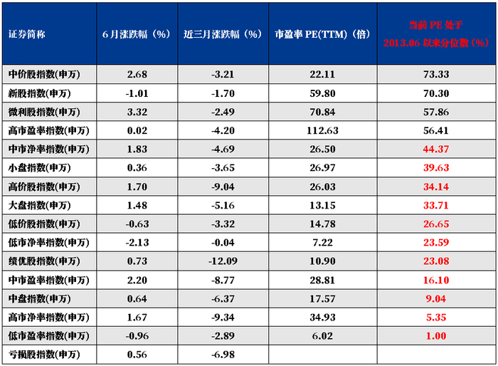 此外,申万分类下,市场上主要风格指数②估值也大多持续处于近十年来的50%以下分位水平,中盘指数更是仅处于历史估值的9.04%分位,相对低估。