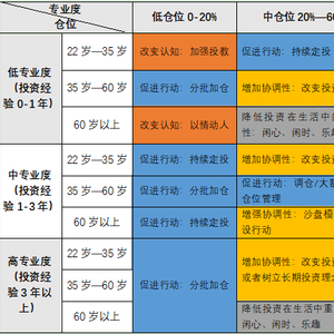 1.对于低仓位、低专业度和年轻人,以投教为主,外界改变认知;