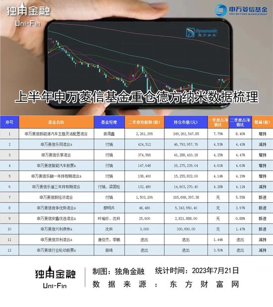 截至二季度末,申万菱信的10只基金都有德方纳米的身影,总计持股数量505万股,较一季度增加294万股,其中申万菱信新能源汽车主题灵活配置混合持股数量最高,达226.1万股。