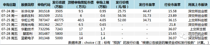 附图:2023年7月24日-2023年7月30日新股申购一览表