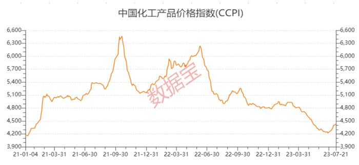 7月份以来,化工产品价格在经历了1至2个季度的连续下行以及由主动去库存至被动去库存的阶段后,产品价格开始回暖上行,像草甘膦、TDI、甲醇、制冷剂、EVA、尿素等产品价格明显上涨,CCPI价格指数从近1年低点开始明显反弹。