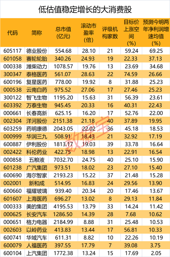 低估值稳增长股出炉