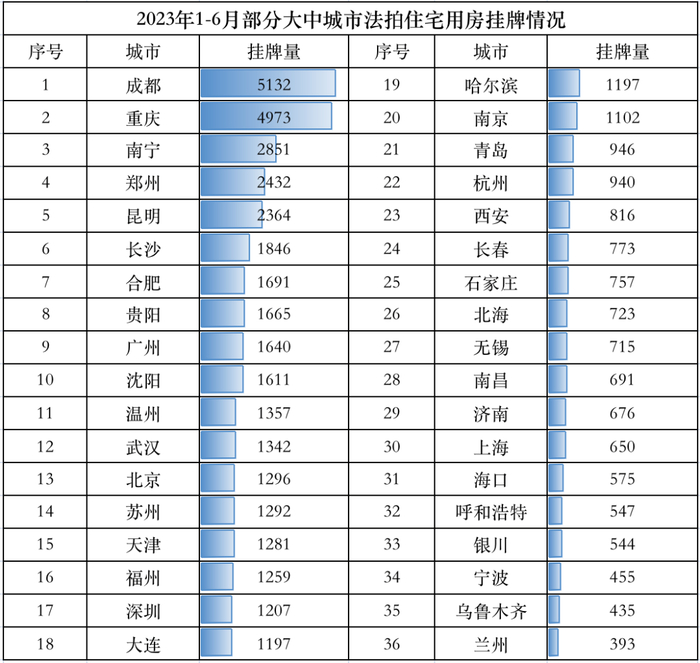 而在今年上半年,昆明的法拍市场住宅挂牌同样坐在了第5的位置。