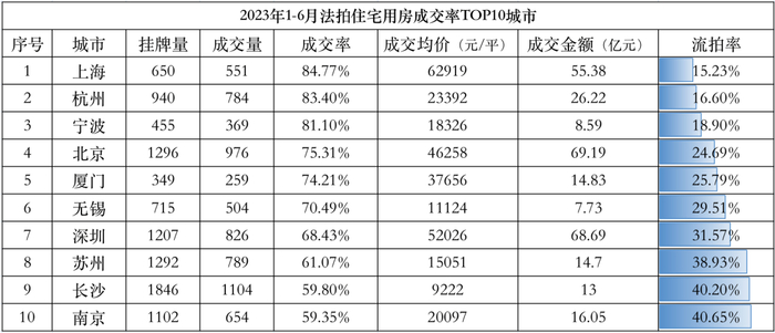 比如排在第一位的上海成交均价在6.3w/平左右,价格遥遥领先其他城市,但是它的流拍率却是最低(成交率最高)。